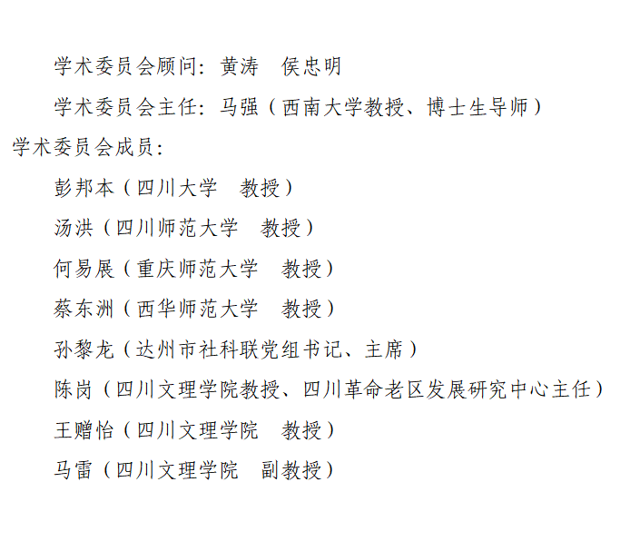 四川省铸牢中华民族共同体意识研究基地、四川文理学院巴文化研究院学术委员会名单