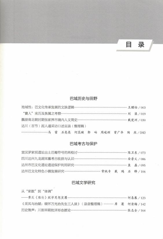 《巴文化研究》辑刊创刊于2017年,由四川文理学院巴文化研究院主办,每年定期出版一至两期,面向社会公开发行,主要刊载巴文化研究的前沿学术成果,包括学术论文、书评、学术综述、调查报告等,内容涵盖政治、经济、法律、历史、考古、哲学、社会、教育、文学、艺术等各个领域。本次辑刊设置了5个专题栏目,分别为“巴域历史与田野”“巴域考古与保护”“巴域文学研究”“巴域文化研究”“新巴人研究”等,旨在全方位、多角度地展示巴文化的丰富内涵和研究价值。